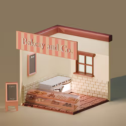 Création d’un bureau avec des produits dérivés d’une marque fictive de lampe en forme d’escalier